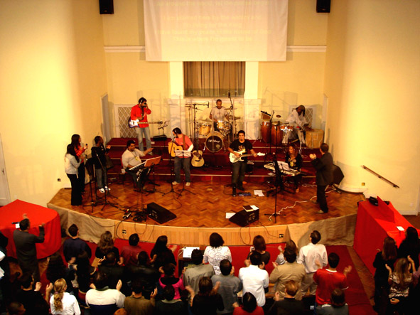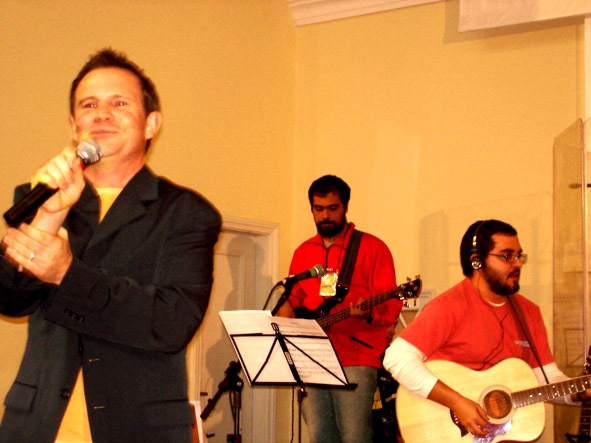 A banda que o acompanhou na sexta e no domingo (quando tocamos na 4ª Igreja Batista do Rio – mais fotos aqui) foi liderada pelo MM Leonardo Cunha no teclado, Sandro no baixo, Rodolpho na bateria, Timóteo na guitarra, Kadu na percussão, Priscila no outro teclado, Diego, Suzana e Vanessa no backing e eu no violão e backing.