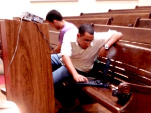 Após o culto, e após desmontarmos a barraquinha de livros, CDs e DVDs da Cristocenter, eu e o Fabiano estávamos levando o material para a sala do som quando o Seu Wilson, zelador da Igreja e ex-monitor do Colégio Batista Shepard, que me conhece há 20 anos, nos parou e disse: