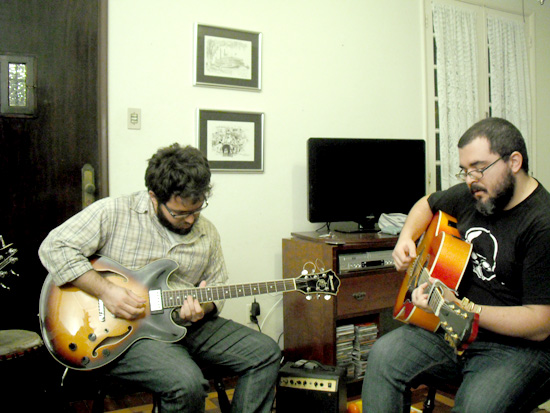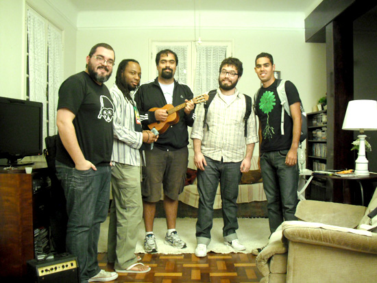 Por fim, foi um prazer imenso estar com eles hoje. Estar, no sentido mais amplo. Minha mente voou até os tempos em que me reunia com amigos pra tirar um som; madrugada adentro compondo, sorrindo, tocando e etc. E isso aqui ainda vai longe, longe. Por ora, preciso dormir.