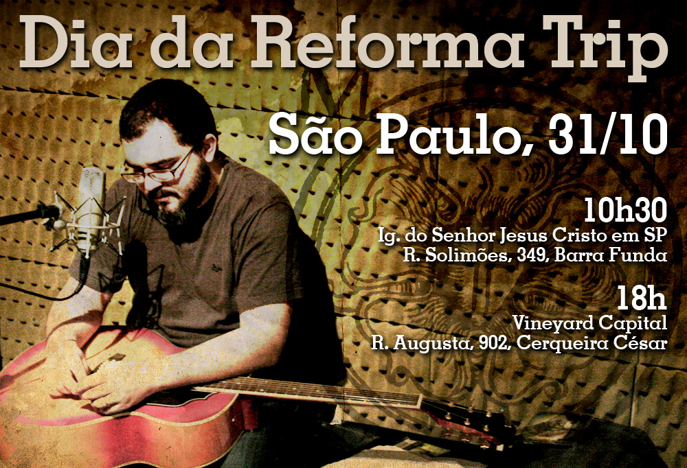 Eu e Eline vamos a São Paulo nos dias 30 e 31 de outubro, 1 e 2 de novembro para ver os amigos, andar na Teodoro e nos divertir. Daí a coisa foi ficando mais interessante. Alguns emails enviados e estarei em duas igrejas tocando no domingo pela manhã e à noite. Eis aí a Dia da Reforma Trip: