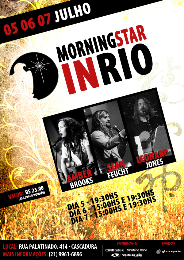 Alguns dos ministros da Morning Star estarão no Rio nos dias 5 a 7 de julho. A iniciativa é dos amigos do ministério Rugido do Leão. Mais informações aqui, ou no cartaz aí em baixo. Eu pretendo ir ao menos um dia. 🙂