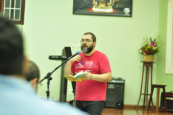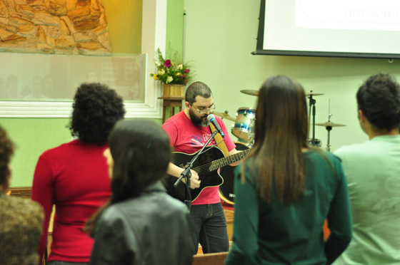 Após um descanso, fomos para a igreja onde aconteceria o culto. Era uma noite agradável no interior paulista. Toquei para uma congregação de poucas pessoas, mas graças ao bom Deus, interessados. A mensagem seguiu o planejamento mensal da igreja, que fala sobre o reino de Deus, então utilizei os seguintes textos: Mateus 3:1.8 (texto principal), Salmo 32:3,4 e Tiago 5:13-16.