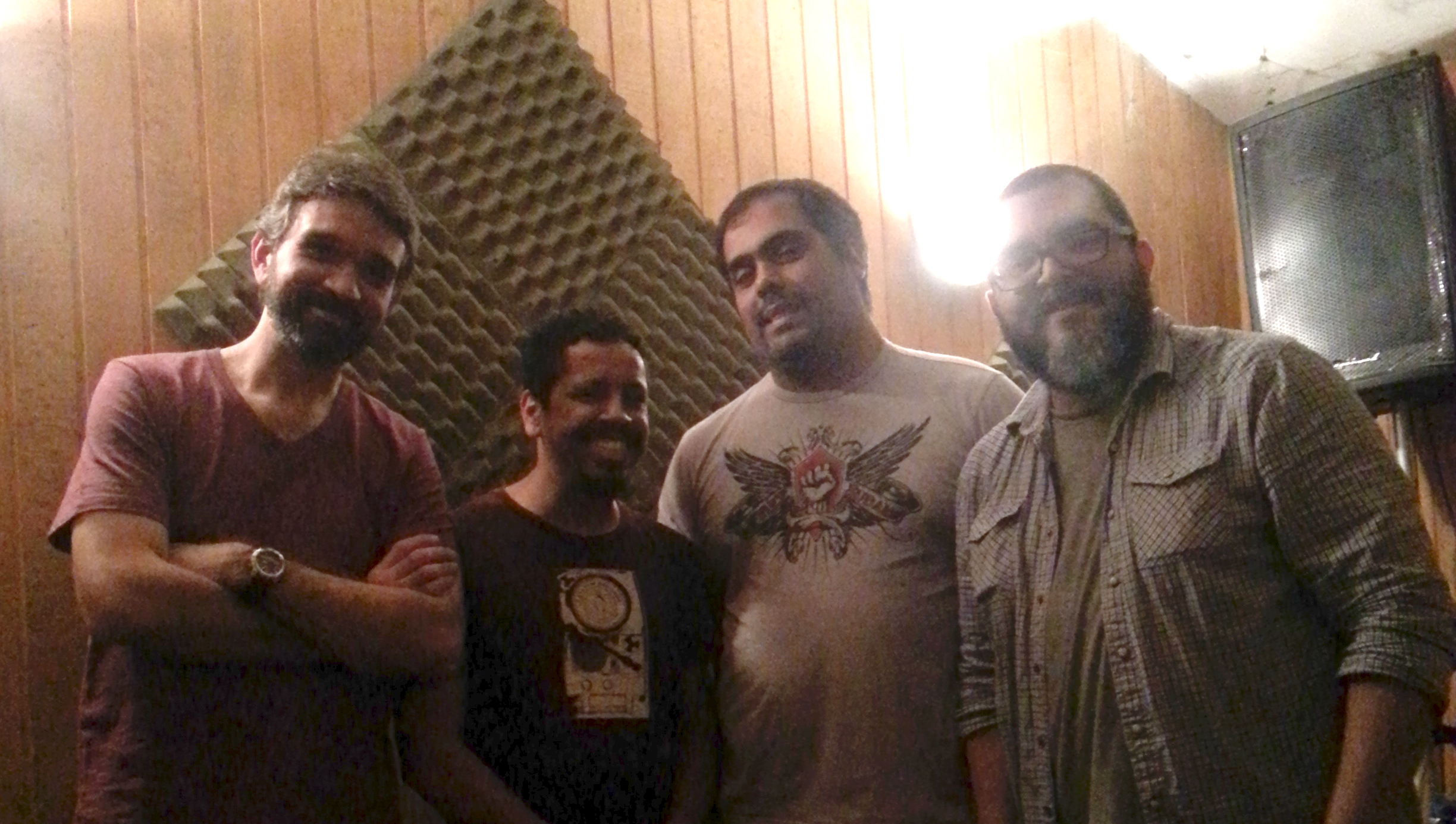 Hoje eu soltei no Facebook e no Instagram a informação de que ontem iniciamos a produção de nosso novo CD. É isso mesmo. Após quase uma no sem ensaiar com os caras (esses daí da foto), voltamos ao estúdio que é praticamente nosso QG para começar a pensar nas novas músicas que estarão neste novo trabalho.